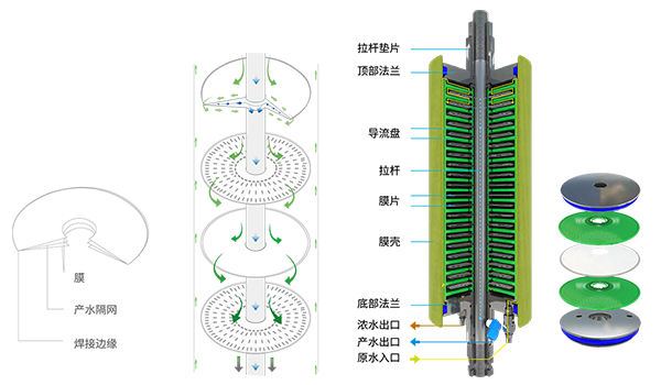 嘉戎技術(shù)DT膜組件是一項用于液體脫鹽及凈化的現(xiàn)代化設(shè)計,采用開放式湍流流體動力學(xué)原理,使得懸浮固體及污染物不易沉積于膜組件內(nèi)部,有效克服濃差極化,有效避免污染和結(jié)垢。在膜分離過程中,即使是在濁度和SDI指數(shù)均增高的情況下,它也能經(jīng)濟(jì)、有效地運行。